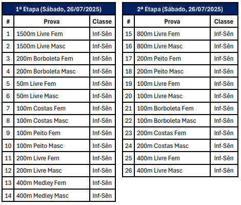 Sábado – 26 de julho de 2025 Os horários oficiais de aquecimento e início das provas serão divulgados pela FDAP na programação técnica.