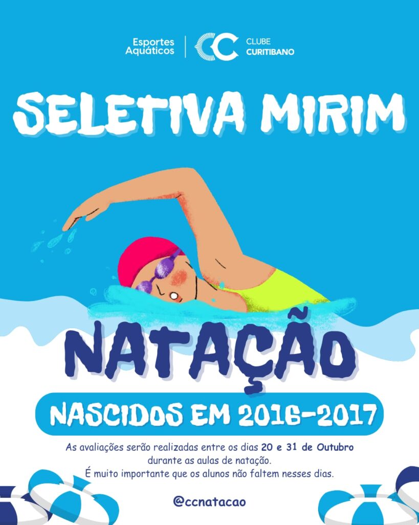 Entre os dias 20 e 31 de outubro, a técnica da Equipe Mirim, Milena Trevison esta realizando as avaliações dos alunos da formação esportiva de natação do Clube Curitibano.